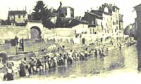 industry developement at the same time generated a factory proletariat. Another plan, the one of rector Capellini concerning the University was linked with the town-plan of 1889; it hinged upon Via Irnerio which by then was about to be built, in order to form the "study town", as planned in the Napoleonic period, thus creating an area which ranged from the clinics of S. Orsola to the Botanic Garden (Palazzina della Viola), also including the Accademia di Belle Arti, the National Gallery the Liceo Musicale and the Municipal Theatre. Meanwhile the suburbs of the city, which already had more than 100,000 inhabitants, had expanded beyond the walls and the avenues without control and were spreading about in a disorderly and squalid way; with some exceptions such as the popular districts of Bolognina and via Libia where the building cooperatives worked; while the residential areas were extending towards the green hillsides, in the districts which are now called Costa-Saragozza, Colli and Murri followed the 19th Century ideal of the citygarden. ln 1909 in the plain that remained till then a huge marshy area - the Company for the Reno draining was set up and began the canalization work which covered more than 1,100km. |